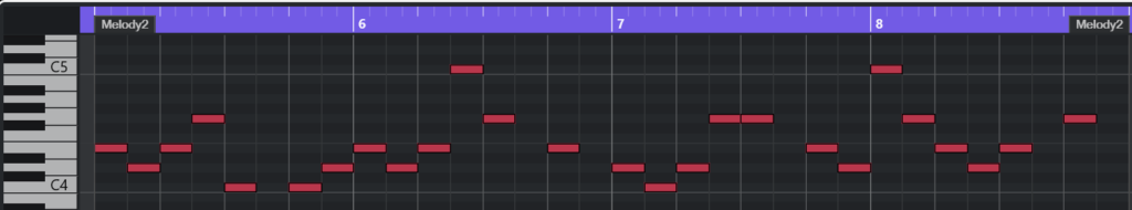 次にメロディーの音数を増やしたパターンを作ってみます。